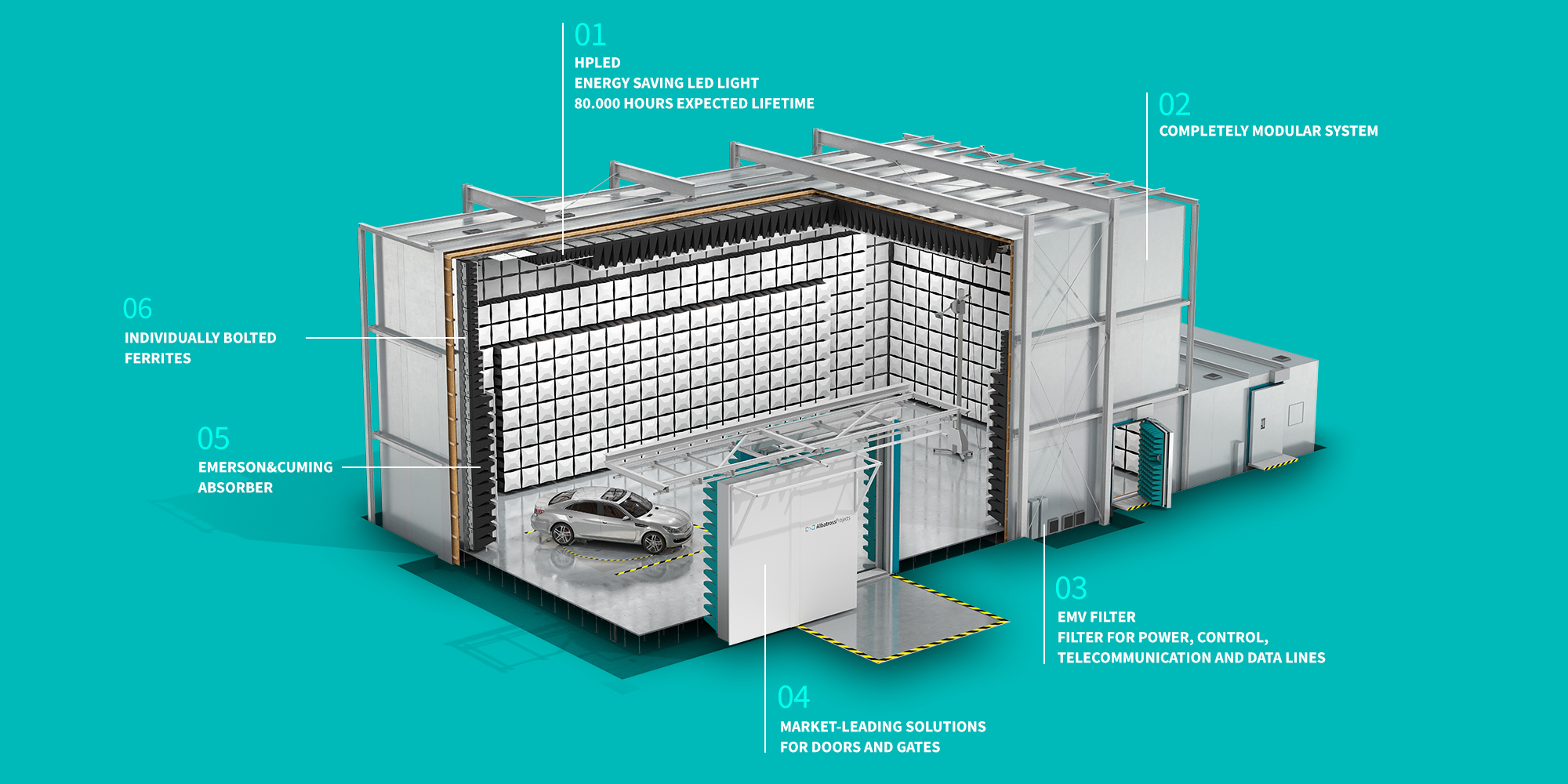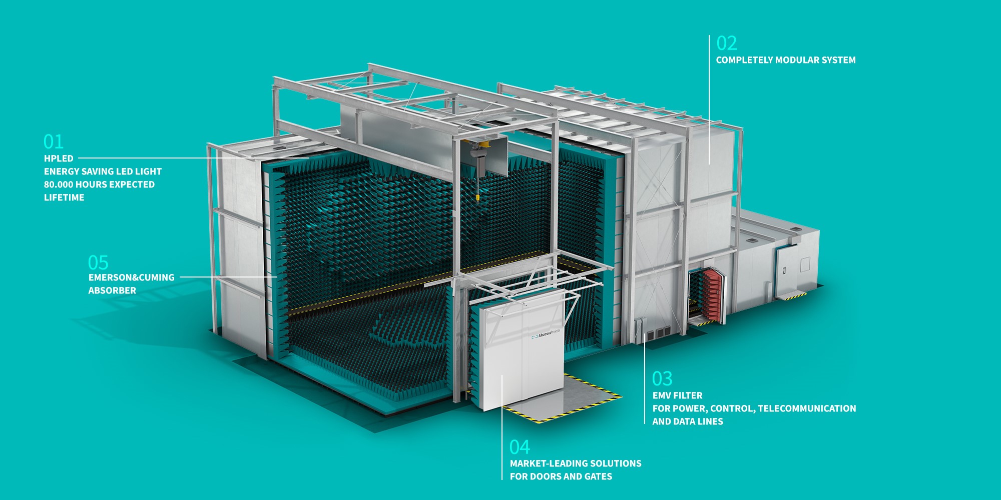 We believe that test, analysis and protective environment must be uncompromisingly dependable – 100%. That's why we develop, plan and build highly precise, electromagnetically shielded and absorbent chambers that guarantee clear findings and efficient protection, now and in the future. From a kit to a turnkey project: Built according to a modular design, we adapt our reusable solutions to suit the individual requirements, products and relevant standards for our customers around the world.